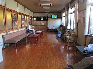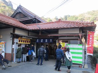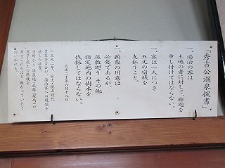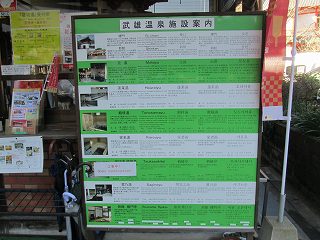 ※ 明治9年に建築された元湯は、現在残っている木造建築の共同浴場では日本最古だ _-そうです。 蓬莱湯と元湯は隣り合っていて、入り口に 武雄温泉施設の案内と蓬莱湯と元湯の それぞれ の浴槽の温度が表示されています。 ![]() ___(武雄温泉施設の案内板)___________(それぞれの浴槽の温度) 券売機で購入した入浴券を 元湯の入り口の右にある受付に出します。 ![]() _______(券売機)_____________(元湯の入り口、左が蓬莱湯) 靴箱は 木製の棚とスチール製があります。 ![]() _____(木製の靴箱)________________(鍵付きの靴箱) 縦長のロビーは かなり広くて・・ ![]() _______(ロビー)_____________(ロビーにあるマッサージ機) 左側の壁に 秀吉公温泉掟書があります。 ![]() ____(秀吉公温泉掟書)_______________(現代文で説明) 浴室の入り口は ロビーの奥にあります。 (浴室の入り口に掛かる湯のれん)脱衣所に入ると 左にスチール製のロッカーがあって、その奥に 洗面台が並んでいます。 ![]() ____(洗面ドレッシング)______________(脱衣ロッカー) 浴室に入ると数段の階段があって、階段を下りた所に 飲料水の蛇口があります。 ![]() ____(入り口にある階段)________________(飲料水) 浴室の左の壁に13個の洗い場が並んでいますが、シャンプーはチープなリンスインタイプです。 (洗い場)浴室の右側にある2つの浴槽は それぞれ10人が入れる大きさで、入り口にあった温度表示 では、あつ湯が45度で かなり熱くて、ぬる湯が43度の熱めの適温でした。 ![]() ____(2つに分かれた浴槽)_________(高い天井、壁に あつ湯と ぬる湯の表示) 無色透明・無味無臭の温泉は100%の源泉かけ流しで、肌触りは 濃厚なツルスベです。 ![]() __(ライオンの頭が付いた湯口)__________(浴槽からあふれる温泉)