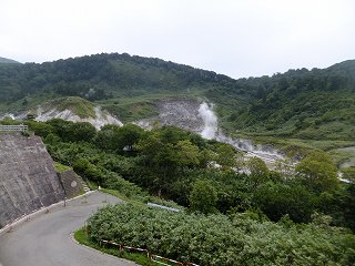 今回は 八幡平周辺の温泉と乳頭温泉郷で温泉めぐりをするために、東北道の松尾八幡平 インターの1つ手前にある西根インターを出て、大更で ガソリンを満タンにした後スーパー (COOP)で2日分の食料と酒と水を調達してから出発しました。 玉川温泉へのアクセスは 夏期(4月下旬〜11月下旬)と冬期(11月下旬〜4月下旬)では 大きく異なるので ご注意下さい。 11月下旬〜4月下旬は R341の田沢湖側二神館⇔鹿角側澄川間が冬期通行止めとなり、 一般車輌の通行ができなくなります。_____________(公式サイトより) 後生掛温泉とセットで利用する人もいると思いますが、玉川温泉の第一駐車場は夜間は閉鎖 されて、後生掛温泉の近くにある2つの大きな駐車場も 近くにキャンプ場があるために夜間は トイレも閉鎖されるので、私は 後生賭温泉から下りた丁字路にある公衆トイレの駐車場で 車中泊しました。 (玉川温泉の第一駐車場)第一駐車場から下りると噴煙が上がる自然研究路が見えて、右下に 宿泊棟が見えます。 ![]() __(駐車場から見た自然研究路)___________(同じく宿泊棟方面) 駐車場から傾斜のきつい階段を下りて 川に沿ったアスファルトの道を下りて行くと、左に 玉川温泉自然研究路の入り口があって、右に 玉川温泉の売店があります。 ![]() _____(川の奥に別館)_______________(玉川温泉売店) 売店の下に本館の入口があって、その左下に 記念撮影用の なまはげの人形があります。 ![]() ______(なまはげ)________________(本館の入り口) 外来入浴者が利用できる大浴場の入口は本館の向かいにあります。 (大浴場の入り口)中に入ったら 券売機で購入した入浴券を受付に出します。 ![]() _______(券売機)_____________(受付の前にある ロビー) (浴室の入り口に掛かる湯のれん)脱衣所にある温泉の成分表と 浴室の入り口の所にある温泉利用証によると 源泉名は大噴、 泉質は 酸性-含二酸化炭素・鉄(U)・アルミニウム-塩化物泉で、加水・ 加温・循環・入浴剤・ 消毒はしていないとのことです。 ![]() ______(温泉成分表)________________(温泉利用証) 脱衣所は広くて 清掃も行き届いています。 ![]() _______(脱衣棚)_______________(洗面ドレッシング) 浴室に入ると 左に大きな かけ湯の舟があって、右に 仕切り板が付いた12個の洗い場が ありますが、シャワーとカランを切り替えるダイヤルは回しにくくて使いにくかった。 ※ かけ湯の奥に 4つの身障者用の洗い場がありました。 ![]() ______(かけ湯の槽)________________(洗い場) 玉川温泉は日本一の強酸性泉(Ph 0.5)なので、浴室は 酸に強い総檜(ヒバかも)造りで、 浴室の床に使われている板には 滑り止めの細かい溝が掘られています。 ![]() ______(浴室の天井)________________(浴室の床) 日本一の酸性度というのは半端でなく、入浴中に 目に入った汗を拭こうと手で触ったら 指に 付いた温泉の影響で目が開けられなくなり、源泉100%のの浴槽から上がると 傷も無いのに 肌がピリピリしたので、すぐに 水で洗い流しました。 ![]() ___(弱酸性の湯と気泡湯)____________(源泉100%のの浴槽) 弱酸性の湯の奥に 後生掛温泉でも見たことがある箱蒸湯がありましたが、私以外に利用した 人を見かけませんでした。 ※ 箱に出入りする姿も滑稽だし、利用中の姿も 晒し首のようですからね〜。 (蒸気湯・箱蒸湯・飲泉コーナー)箱蒸湯の隣にある飲泉コーナーでは、用意された紙コップに入れた50%の源泉を さらに5倍に 薄めて飲むのですが、それだけ薄めても まだ酸っぱかった。 ※ 飲泉後に水道水で口をすすがないと 歯のエナメル質を傷めるそうです。 (浴室にある腰掛)________________ _____ - - - - - - - - - - - - - - - - - - - |