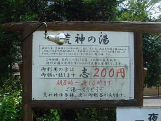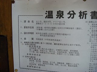 長野道の松本インターから158号線で西に走り、上高地の入り口から飛騨に向けて左上に 行って安房トンネルをくぐったら 平湯から471号線で北に走り、栃尾の丁字路を右折すると 右にあります。 ![]() ____(荒神の湯の石碑)_________________(駐車場) 荒神の湯の注意書きに 駐車場の利用は1時間程度でお願いしますと書かれてましたが、 (駐車場の隣に公園のトイレもあるので)車中泊をしているような車が数台ありました。 ![]() __(車中泊で料理を作っている車)_______(駐車場の横にある公衆トイレ) 駐車場から右に行って 数段の階段を下りた所に、狭霧の湯(女湯)と ふれあいの湯(男湯) と書かれた脱衣所があります。 ![]() ____(荒神の湯の入り口)________________(脱衣所) 脱衣所の入り口に 維持協力金(200円程度)を入れる黄色い箱があります。 ![]() _____(荒神の湯の案内)_______________(協力金の箱) 協力金箱の右後ろにある温泉分析書によると 源泉名は宝3号、蒲田16号、クリア谷1号、 新穂高2,3,4,5,8号の混合泉で、泉質は 単純温泉です。 (温泉分析書)脱衣所の床はスノコで、脱衣棚は 2段の棚にプラスチックの籠が載った簡単な作りです。 ![]() _______(脱衣所)_____________(露天風呂から見た脱衣所) 荒神の湯は露天風呂だけで、洗い場がないので 洗面器で汲んだ浴槽の温泉で掛け湯をして 入りました。 露天風呂には2つの浴槽がありますが、この時は 手前の浴槽が空っぽで 奥の浴槽にだけ 温泉が入ってました。 浴槽は定期的に清掃されているようですが 浴槽の岩の一部に苔のようなものが付いてました。 ![]() ___(空だった手前の浴槽)_________(温度調節用の水が出ているホース) 湯口は 男女の浴槽を仕切る柵の下にあるようで、その付近は温度が高かった。 温泉は無色透明・無味無臭で、肌触りにも これといった特徴を感じません。 (大きい浴槽)温泉は源泉かけ流しで、浴槽からあふれた温泉は排湯溝から流れ出ています。 (浴槽から流れ出す温泉)目の前には蒲田川が流れ、背後に 岩肌を晒す山が見えました。 ![]() ___(目の前を流れる蒲田川)____________(背後に見える山) 露天風呂はアバウトな作りで、隣にある公園の東屋から丸見えで 川を挟んだ対岸にある民家 からも無防備な状態ですが、男湯だから まあいいか・・。 (露天風呂から見た公園の東屋)_____ - - - - - - - - - - - - - - - - - - - |