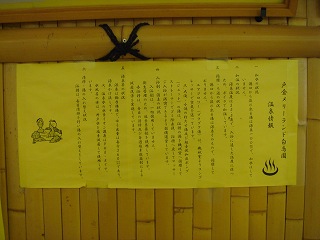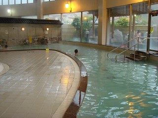 ※ 現在は建て替えられて リニューアルオープンしたそうです。 上信越道の坂城インターから18号線を北上し、「戸倉上山田温泉入り口」の信号を左折して 万葉橋の手前で左折して堤防の上の道を走ると 右下にあって、駐車場は広い。 (メリーランド白鳥園)中に入って券売機で購入した入浴券を受付に出すと、券にスタンプを押して 昔の切符の ような切れ込みを入れていましたが、この切れ込みを入れた理由が分からなかった。 ![]() _______(券売機)__________________(受付) ホテル白鳥園に併設された温泉施設ですが 現在はホテルの営業をしていないようで、こちら の施設も 館内のあちこちに老朽感が目立つ所がありました。 (浴室の入り口に掛かる湯のれん)脱衣所は広くて 脱衣棚の半分に鍵が付いていますが、ただ広いだけで 活気が感じられ なかった。 ![]() ____(洗面ドレッシング)________________(脱衣棚) 脱衣所にある温泉分析書と温泉情報によると 源泉名は白鳥園第1号源泉、泉質は アルカリ性 単純温泉で、加水はしていないが 加温・消毒・循環ろ過をしているとのことです。 ![]() ______(温泉分析書)__________________(温泉情報) 浴室も広くて、天井は 段差が付いた多角形の構造になっていて、男女の浴室が 時代劇に 出てくるような瓦屋根付きの塀で仕切られています。 (多角形の天井と瓦屋根が付いた塀)浴室の右手に 楕円状にカランが並んだ洗い場があります。 (洗い場)洗い場の隣にジャグジー風呂があって、その隣に 2つのボディーシャワーがあります。 反対側の塀の奥にサウナがあって その前に水風呂がありましたが、私は どちらも利用して ないので分かりません。 ![]() (ジャグジーの浴槽、奥に水風呂が見える)_______(ボディーシャワー) 瓦屋根が付いた塀に沿ってジャグジーの寝湯があって、半円形の窓に沿って内湯の大浴槽が あります。 ※ 以前は 湯口の上に源泉をろ過した滝湯があったそうですが、現在は取り外されています。 温泉は掛け流しで、ツルスベの肌触りの温泉を口にすると ゆで玉子の味と硫化水素臭が しました。 ![]() ________(寝湯)________________(内湯の大浴槽) 「さざれし」と名付けられた露天風呂は縦長の浴槽で 少し狭い感じもしますが、浴槽から 立ち上がると 周囲にある山が見えました。 (岩が並んだ露天風呂)泉質は内湯と同じで 硫化水素臭がするものの、硫黄泉のような酸っぱさは感じなかった。 露天風呂も掛け流しで 浴槽からあふれた温泉は排水溝に流れ込んでいます。 ![]() ___(白い結晶が付いた湯口)___________(排水溝に流れ込む温泉) (湯あがり) 2ヶ所ある休憩所の他に 食堂と品揃えの多い売店があって、浴室入り口の前に 昭和天皇が 食事をされた時の食器が並べられていました。 ![]() _______(休憩所)_________________(大広間) ![]() _________(食堂)___________________(売店) _____ - - - - - - - - - - - - - - - - - - - - - |