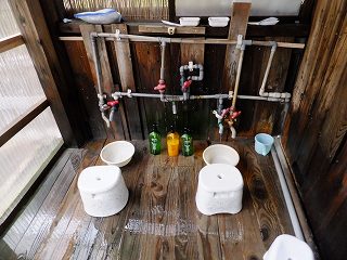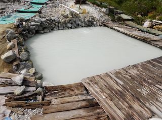 今回は 八幡平周辺の温泉と乳頭温泉郷で温泉めぐりをするために、東北道の松尾八幡平 インターの1つ手前にある西根インターを出た「大更」でガソリンを満タンにした後、スーパー (COOP)で2日分の食料と酒と水を調達してから出発しました。 ※ 今回の最初の2泊の車中泊場所は レポの最後に記載してあります。 大更から23号線と212号線で西に登り、松川温泉の先で案内に従って右上に318号線を登って 行くと 八幡平の登山口がある見返峠の手前にあります。 藤七温泉は標高1400メートルで 東北で最も高所にある天然温泉です。 ![]() _____(藤七温泉 彩雲荘)___________(東北一の高所の天然温泉) 玄関に入ると左に受付があり、右に土産物売り場があって その奥にトイレがあります。 女性は 湯浴み着やバスタオルの着用が可能なので、売店で専用のバスタオルを売ってます。 ![]() ________(受付)_______________(土産物コーナー) 温泉は宿泊棟と別棟になっていて、右にある通路の奥に靴箱と温泉の入り口があります。 立ち寄り入浴者には関係ないけど、靴箱の横に「混浴内風呂と混浴露天風呂は 夜7時半から 8時半まで女性専用になります」と書かれていました。 ![]() __(靴箱の奥に浴室の入り口)_________(4本の男根が並ぶ浴室の入り口) 脱衣所はそれほど広くなく 作りも簡素です。 脱衣所にある温泉の成分表によると 源泉名は籐七温泉(第一号源泉・第二号源泉混合泉)、 泉質は単純硫黄泉で、源泉温度が高いので加水をしているが 加温・循環・装置・入浴剤・ 消毒処理はしていないとのことです。 ![]() _______(脱衣籠)________________(温泉の成分表) 洗い場にリンスインシャンプーとボディーソープがありますが、シャワーがないうえに カランは 水と湯を別々に出して温度調整しなくてはならないので使いにくい。 (洗い場)浴室は透明の波板ビニール囲いで、そこに 10人ぐらいが入れる木の浴槽があります。 温泉の温度はぬるめで 強い硫化水素臭がしますが、それほど酸っぱくありません。 ![]() _______(内湯)___________________(湯口) 露天風呂は野天風呂で、5つの混浴浴槽と 1つの女性専用の浴槽があります。 野天風呂の浴槽は 底にスノコが敷かれていて、その下から 泡と共に源泉が湧いています。 温泉は白濁ですが、草津温泉のような濁り方ではなく 泥湯の濁り方です。 ![]() __(男性の内風呂からの出口)______________(野天風呂) 一番手前に浅い浴槽がありますが ここはかなり熱い。 (一番手前にある浴槽)その浴槽から緑色のマットが敷かれた坂を登った所に 見晴らしの良い浴槽があります。 こちらの温泉は適温で、山側からブクブク出ている泡の所に手をかざすと かなり熱い所が あります。 ![]() ___(一番高い所にある浴槽)__________(最高所の浴槽から見た全景) 最初の浅い浴槽の下に W形の木枠が付いた浴槽があって、その下に 2つの四角い木枠 の浴槽がありますが(タオルを巻いて利用している)カップルが数組いたのでカメラを向け られませんでした。 浴槽の底に大量の泥が溜まっていて、女性は その泥でパックを楽しんでました。 (大浴槽から見た景色)W形になった浴槽の奥にある 危険立ち入り禁止と書かれた赤い札の下から青白い煙が 上がっていて、その付近からも 沢山の小さい泡が出ています。 浴槽全体の温度は ぬるめですが、泡が出ている所は かなり熱い。 ![]() __(画像の12時の位置に赤い札)__________(小さい泡が分かるかな) 野天の浴槽と内湯の間にある小さな小屋の中に やたら熱そうな泥湯のようなものが出てまし たが、これが何なのか分かりませんでした。 ![]() ___(蒸し風呂のような小屋)______________(小屋の中) 岩盤浴のようなスペースの奥に スダレで目隠しされた女性専用の浴槽がありました。 (女性専用風呂)