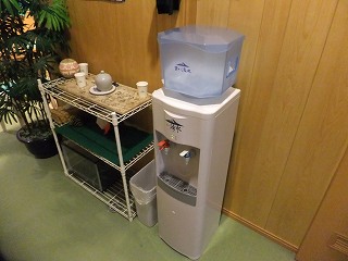 温泉で汗をかいた体に嬉しいウォーターサーバーの水を飲んで 休憩所で休みました。