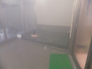 嵐の湯は 薄暗い中に蒸気が充満していて 床に薬石といわれるものが敷き詰められていま
