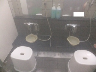 浴室に入ると 左に立って使うシャワーがあって その奥に3つのカランがありますが、ソープ