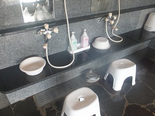 ![]() _______(駐車場)______________ ____(鼓川温泉) 駐車場から階段を登った所に芝生のテーブルがあって、その奥に入り口があります。 ![]() ___(左に 芝生のテーブル)_________________(入り口) 中に入ったら 券売機で購入した券を受付に出します。 ![]() _______(券売機)____________________(受付) 受付の前に産直の土産物が沢山並んでいて、近くの壁に温泉分析書がありました。 温泉分析書によると 源泉名は山梨市花かげの郷まきおか鼓川温泉で、泉質は アルカリ性 単純温泉です。 ![]() _____(地産の土産物)_________________(温泉分析書) 浴室は 受付の左にある廊下を歩いて行き・・ ![]() (沢山の観光パンフレットが貼られた廊下)________(廊下の奥にある待合席) 昇降機が付いた階段を登った上にあります。 ![]() ____(右が昇降機のレール)___________(浴室の入り口に掛る湯のれん) 脱衣所のロッカーは 鍵が掛るスチール製(無料)で数も多いが 少し狭かった。 ![]() _____(洗面ドレッシング)_________________(脱衣所) 浴室に入ると 左に5つ 右に2つの洗い場があります。 カランは 自分で出したり止めたりできるのは良いがダイヤルが回しにくかった。 ![]() _______(洗い場)________________(ダイヤルが分かるかな) 内湯は 窓側に10数人が入れる長方形の浴槽があって、左がジャグジーになっていて その 隣に3連のジェットが出ていますが、 オーバーフローにはなってません。 温泉は無色透明・無味無臭で適温です。 ![]() ______(内湯の浴槽)__________________(湯口) 浴室の入り口の右に サウナと水風呂がありましたが、私は どちらも利用していないので 分かりません。 ![]() (水風呂・サウナの入り口・浴室の入り口)________(五右衛門釜の水風呂) 露天風呂は10人が入れる岩風呂で 立派な瓦葺の屋根が付いています。 (露天風呂)温泉は無色透明・無味無臭で 肌触りはツルスベとヌルスベの両方を併せ持っていますが、 露天風呂もオーバーフローにはなっていませんでした。 施設は高台にあるのですが、背後が山の斜面で 前は塀が高い為に 期待した開放感では ありませんでした。 ![]() _____(石組みの上に湯口)_____________(露天風呂から見た景色) (湯上り) 休憩所の大広間は広くて、飲食物の持ち込みが可能で 隣に給湯室もあります。 ![]() _______(大広間)___________________(給湯室) (マッサージチェアー)休憩所の奥に食事処「あぜ道」がありましたが、この後 ブドウ狩りをして そこで焼肉を食べる 予定だったので見に行きませんでした。 _____ _________________(2002年) (2017年) - - - - - - - - - - - - - - - - - - - - - |