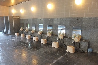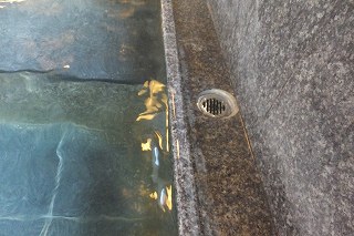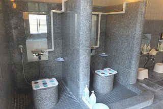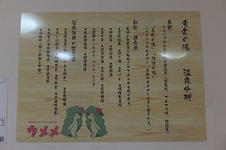 ![]() ___(梅ヶ島温泉 黄金の湯)_____________(前回の黄金の湯) 靴箱の鍵は自分で保管して、券売機で購入した入浴券だけ受付に出します。 ![]() _______(券売機)__________________(受付) 浴室は、休憩所の間にある廊下を通ってから右に曲がって マッサージ機が並ぶ縁側の 廊下を歩いた先にあります。 ![]() __(マッサージ機が並ぶ縁側)____________(廊下の天井の梁) (浴室の入り口に掛かる湯のれん)脱衣所は広く 清掃が行き届いていて、脱衣棚は 籐の籠が入った棚と100円リターン式の スチール製ロッカーがあります。 ![]() _(脱衣棚、奥に鍵付きのロッカー)__________(洗面ドレッシング) ![]() __(脱衣所の腰掛と意見箱)____________(黄金の湯 温泉分析書) 脱衣所にある温泉分析書によると 源泉名は梅ヶ島新田2号、泉質は ナトリウム-炭酸水素 塩温泉で、温泉成分に影響を与える項目では 加水はしてないが 加温・循環ろ過・消毒を しているとのことです。 ![]() ______(温泉分析書)___________(温泉成分に影響を与える項目) 前回は紅葉シーズンで かなり混んでいましたが、今回は観光シーズンでないうえに 終了 間際だったので、利用者は 私1人きりでした。 (浴室)浴室に入ると 右手前に温度違いになった あがり湯・かけ湯があって、左手前に 使い道の 分からない板張りのスペースがあります。 ![]() __(左が あつ湯で、右が ぬる湯)________(物置になっていたスペース) 浴室の右側の壁に7つの洗い場がありますが、ソープ類が 以前使った時に匂いが取れなくて 困ったお茶の成分入りだったので、私は 固形石鹸で体を洗いました。 ![]() _______(洗い場)_____________(お茶のソープと固形石鹸) 窓側に 座って使うシャワーが2つありましたが、私は使ってないので分かりません。 (座って使うシャワー)浴室の左奥に 温度違いになった大小2つの浴槽があります。 浴室は 目線から下が御影石造りで、浴槽の縁に ヒノキと思われる木が使われています。 (内湯の浴槽)手前の浴槽は5〜6人が入れる大きさで、温度は 34度のぬる湯です。 ![]() _____(手前の浴槽)________________(同じく湯口) 奥にある浴槽は12〜14人が入れる大きさで、温度は 41度の適温です。 ![]() ______(奥の大浴槽)_______________(大浴槽の湯口) 温泉は 無色透明・無味無臭で かなり濃厚なヌルスベ感がします。 温泉はオーバーフローになっていますが、浴槽から溢れた温泉は 洗い場の排水溝でなく 窓の下にある回収口に流れ込んでいます。 ![]() ____(窓の下に回収口)____________(回収口に流れ込む温泉) 露天風呂に出ると、階段を登った上に 屋根付きの10人が入れる岩風呂があります。 ![]() _______(露天風呂)______________(屋根付きの岩風呂) 岩風呂には3ヶ所の溝があって、そこから溢れた温泉が排水口に流れ込んでいます。 露天風呂は38度のぬる湯で、内湯と同様に濃厚なヌルスベ感がしました。 ![]() _____(露天風呂の湯口)____________(浴槽から溢れる温泉) 露天風呂の屋根には 時計とタオル掛け用のボードがあって、浴槽の横に 意味の分からない 人形がありました。 ![]() ______(時計とボード)______________(何なのでしょう) 前回 紅葉を楽しめた山が、今回は すそ野を新緑に染め始めていました。 ![]() ___(露天風呂から見た山並み)_________(露天風呂に咲いてたドウダンツツジ) (湯上り) 休憩所は 廊下を挟んで対になった2つの大広間があります。 ![]() _______(大広間)_______________(土産物コーナー) 別棟に 土産物を売っている黄金茶屋と 食事処の黄金の里がありますが、この時は営業 時間が終了してました。 ![]() ______(黄金茶屋)_________________(黄金の里) _____ _________________(2002年) (2017年) - - - - - - - - - - - - - - - - - - - - - |