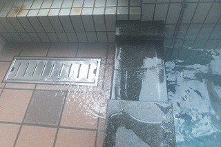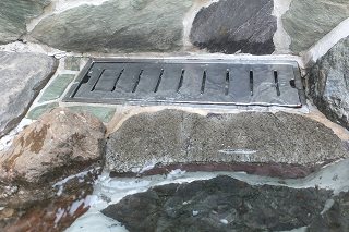 (虹乃湯)土産物屋さんのレジで立ち寄り入浴の受付を済ませたら、背後にある階段を登って2階に 上がります。 ![]() __(湯元屋さんの土産物売り場)_______(浴室の入り口に掛かる湯のれん) 湯のれんをくぐると 右に靴箱とトイレがあって 左に脱衣所があります。 ![]() ___(脱衣所の入り口と靴箱)____________(脱衣所の腰掛け) 脱衣所は狭いが掃除が行き届き、ロッカーは鍵付きで 洗面台にはドライヤーがあります。 ![]() ______(脱衣ロッカー)________________(洗面台) 脱衣所にある温泉分析書の源泉名の所に混合泉と書かれていて、泉質は単純硫黄温泉で、 横の小さな紙に 内湯は加温のみで、露天風呂は 加温と循環装置を使用していると書かれて いました。 (温泉分析書)浴室に入ると 右の壁に3つの洗い場がありますが、カランは温泉の影響で黒くなっています。 ソープ類は静岡県らしく お茶の成分入りで、以前 このタイプで お茶の匂いが なかなか取れ なくて困った経験をしたことがあるので、ここでは 持参した物を使いました。 (洗い場)内湯の浴槽は3〜4人が入れる大きさで、窓の外に おゆのふるさと公園が見えます。 ![]() ______(内湯の浴槽)______________(内湯から見た景色) 湯口から出ている源泉の量はそれほど多くなく、普段は 露天風呂側の壁に開いた穴から 露天風呂に排出されていて、人が浴槽に入った時だけオーバーフローになります。 ![]() _(温泉が露天風呂に流れ出る穴)___________(浴槽から溢れる温泉) 内湯は適温で、無色透明・無味無臭の温泉の肌触りは かなり濃厚なヌルスベです。 (湯口)露天風呂は2〜3人が入れる岩風呂で、温度は かなりぬるくて、循環装置を使っているとの ことですが かなりのヌルスベ感がしました。 周囲を高い塀に囲まれている為 開放感はありません。 ![]() _______(露天風呂)_____________(露天風呂から見上げた景色) この時の露天風呂の温泉は 内湯からあふれた温泉だけでしたが、以前は 別に湯口が あったようで、大きな岩に 湯が出ていた痕跡がありました。 ![]() ___(湯が流れた跡が残る岩)______(左上にも穴があって、右が 内湯からの穴) 温泉はかけ流しで、浴槽からあふれた温泉は排水溝に流れ込んでいます。 (排水口に流れ込む温泉)(湯上り) ご主人は愛想が良い人で、明日八紘嶺と山伏に登る言ったら 登山道のマップを渡してくれて、 食事処の写真を撮りたいと言ったら 静岡おでんも撮ってくれと言われました。 ![]() _______(食事処)___________(黒いはんぺんで有名な静岡おでん)