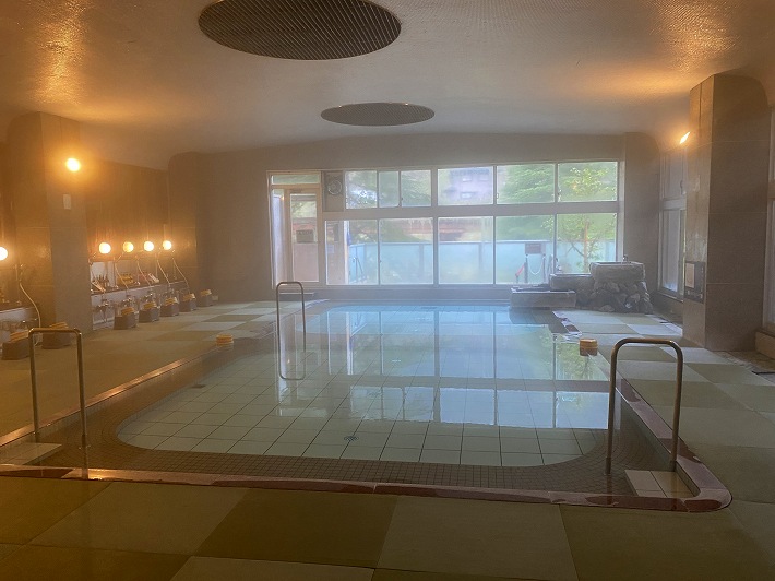 内湯の浴槽は大きくて 10人が入れる浴槽が2つ繋がっています。