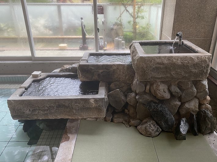 浴室の右奥にある湯口は三段の作りになっています。