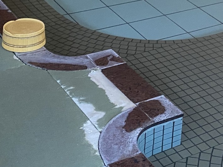 ________(浴槽からあふれ出る温泉)
