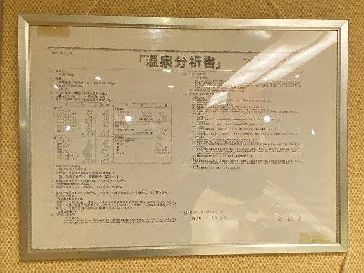脱衣所にある温泉分析書によると源泉名は宇奈月温泉 泉質は単純