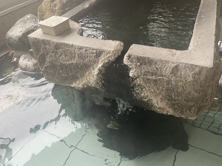 浴槽の大きさに対して湯口からの温泉の投入量が少ないので
