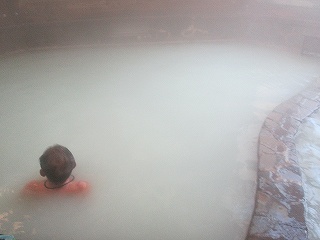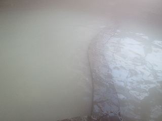 白濁の温泉は 硫化水素というより石灰のような臭いがして、酸っぱさは 他の島原の温泉に