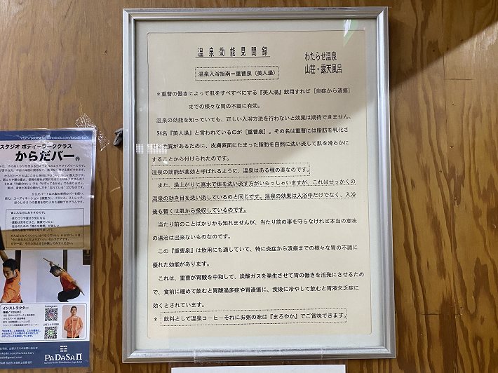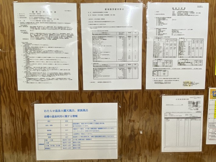 脱衣所にある温泉分析書によると源泉名は わたらせ温泉 天翔の湯で