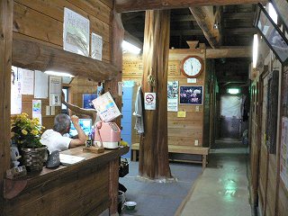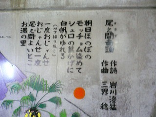 独特な山容のモッチョム岳の麓にある温泉で、温泉の庭先に 淀川入り口に通じる尾之間歩道 の登山口があります。 (尾之間温泉)料金が200円と格安なのに テレビを見られる休憩所もあります。 ![]() _____(受付のおじさん)___________(待合所のテレビとロッカー) 浴室の入り口に 貴重品はロッカーに入れるように書かれています。 (浴室の入り口)脱衣所は広くなく 脱衣棚はプラスチックの籠です。 ![]() _______(洗面台)_________________(脱衣棚) 温泉の関係か 浴室は地面の高さよりも低くなっています。 階段を下りた所に かけ湯がありますが、カランが3つしかなく シャワーの使用も洗髪だけに 限られているので、地元の人は 浴槽の温泉を汲んで体を洗っていました。 (右手前にあるのが掛け湯)浴室の壁には 尾之間(オネダ)音頭の歌詞と棒踊りの絵が描かれています。 ![]() (浴室の壁に書かれた尾之間音頭の歌詞)_________(棒踊りの絵) 温泉は 浴槽の底に敷かれた玉石から湧いていて、浴槽からオーバーフローになっています。 無色透明で やや熱めの温泉は わずかに硫化水素臭がしてツルスベの肌触りです。 (手ブレしたけど、底の玉石が分かるかな)夕方の5時まで 駐車場の隅にある足湯を使えます。 (屋根が付いた足湯)今回入った屋久島の温泉の中で 値段と泉質と設備をトータルして一番気に入ったのは この温泉で、2回入ったのも この温泉だけです。 _________________ _______________-(屋久島のページに行く) ______ - - - - - - - - - - - - - - - - - - - - |
