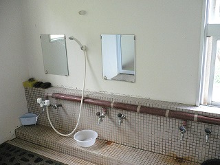 ※ 以前は鉱泉を加熱して赤い色をしていたそうですが、今は地下水を沸かしています。 大浦の湯は 楠川温泉と同じ上屋久町営の共同浴場で、外観も中の作りも良く似ていますが、 楠川温泉が鬱蒼とした森の中にあるのに対して 大浦の湯は明るい海岸にあります。 (大浦の湯)入り口の右に管理人室があって、中に 朴訥とした感じの管理人がいました。 ![]() (駐車場に咲いていたヒルザキツキミソウ)________(花のアップ) 脱衣所は狭くて脱衣棚の数も少ないが、浴槽の大きさを考えれば これで問題ありません。 (脱衣棚と洗面台)洗い場の作りも簡素で、シャワーが付いているのは1つだけで、カランは お湯の蛇口と水の 蛇口が離れ過ぎていて使いにくい。 (洗い場)管理人さんは 口数は少ないが清潔好きなようで、洗面器とイスは(乾きやすいように)重ねて 積まずに キレイに並べられていました。 ![]() _____(大浦の湯の浴槽)____________(男風呂から見た景色) 2人が入れる浴槽には カランのパイプを延長したお湯の蛇口と水の蛇口が並んでいますが、 水のバルブは 少し離れた窓の下にあって分かりにくかった。 (左が熱湯で 右が水)