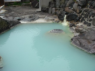 (内湯) 露天風呂は混浴ですが。、内風呂は男女別に分かれています。 ![]() ___(籐の籠が入った脱衣棚)_____________(質素な洗面台) 浴室の床には 水はけの良いスノコ板が敷かれています。 洗い場周りは清掃が行き届いておらず、カビが生えたカランやシャンプーのボトルには触り たくなかったので、浴槽から汲んだ温泉で 掛け湯をして入浴しました。 ![]() _______(洗い場)______________(カビが生えたカラン) 洗い場は不衛生でしたが 浴槽はキレイに清掃されていて、硫化水素臭がする温泉には 大きな湯の花が沢山浮かんでました。 以前テレビで見た時には無色でしたが、この時の温泉は緑青色をしていたので、その時に よって色が変わるようです。 ![]() _____(キレイな色の温泉)_____________(沢山の湯の花) 窓側に 小さな寝湯のような作りの真水の浴槽がありましたが、こちらには 冷たくて入れま せんでした。 (水風呂、青は浴槽に塗られた色)内湯の窓の下にある池には 今までに見たことがない大きな錦鯉が泳いでいて、川の対岸に 小学校のグランドが見えました。 ![]() ___(浴室の窓の下にある池)__________(対岸にある小学校の校庭) _____ - - - - - - - - - - - - - - - - - - - - - |