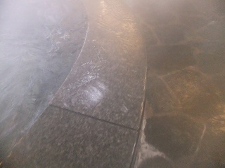 米子自動車道の湯原インターから313号線を3Km北上し、湯原温泉の大きな看板がある 信号から左に入って 川沿いの道を約1Km走ると左にあって、その先に大きな無料駐車場 があります。 (湯本温泉館)玄関を入ると 左に土産物コーナーがあって、正面の窓側に待合席のテーブルがあります。 ![]() ____(土産物コーナー)_________________(待合席) 券売機で購入した入浴券を受付に出します。 ![]() _______(券売機)__________________(受付) 浴室は 階段を登った2階にあります。 ![]() ____(浴室に行く階段)______________(2階にあるロビー) (浴室の入り口に掛かる湯のれん)脱衣所は広くて清掃も行き届いてます。 ![]() __(洗面ドレッシングと脱衣棚)_______(浴室の入り口・トイレ・貴重品入れ) 温泉分析書には 源泉名が温泉館下泉と書かれていて、分析書別表には5本の源泉を使った 混合泉と書かれていました。 右下の案内に「当館の地下が湯原町の泉源で、毎分約1300Lの温泉をホテル・旅館へ配湯 しています」と書かれています。 ![]() ______(温泉分析書)____________(上から8行目が その案内) 浴室に入ると 右の壁に洗い場が並んでいます。 ![]() _______(洗い場)__________(リンスインシャンプーとボディーソープ) 浴槽は2つあって、2つの浴槽の間にある湯口から 左右の浴槽に温泉が投入されていて、 左の円形の浴槽がジャグジーになっています。 ![]() ___(左右に出ている湯口)______________(ジャグジー槽) 右側の浴槽は8人が入れる大きさで 窓側からジェットが出ていますが、どちらの浴槽も 無色透明・無味無臭で 肌触りが真湯と変わらないうえに塩素臭がきつかった。 ![]() _____(右側の大浴槽)_______________(ジェットの泡) 温泉らしさは感じませんでしたが、浴槽から大量の温泉がオーバーフローになっているので 循環・ろ過・消毒をした温泉に源泉を足した 半かけ流しなのかもしれません。 (浴槽からあふれる温泉)サウナもありましたが 私は利用してないので分かりません。 ![]() _______(サウナ室)_________(サウナの所にある 立って使うシャワー) (湯上り) ロビーの他に 座って休める休憩室と卓球ができる部屋があります。 ![]() ___(2階の奥にある休憩室)_______________(卓球台)