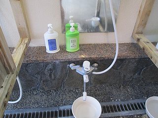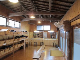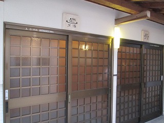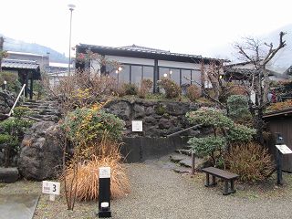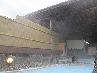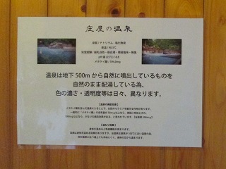 庄屋の館は敷地が広くて、温泉は 外来者用の駐車場から かなり登った所にあります。 (庄屋の館の看板)石畳の道を登って行くと 温泉を汲みあげる櫓と本館の入り口があって・・ ![]() ___(現役かどうかは不明)______________(本館の入り口) 本館の入り口の右上に温泉棟の入り口があります。 ![]() __(本館の前から見た温泉棟)_____________(温泉棟の入り口) 中に入ると、玄関の左に休憩所の部屋があって 左奥に受付があります。 ![]() _______(休憩所)__________________(受付) 脱衣棚は籐の籠なので 貴重品はロッカー(脱衣所にもあります)に入れます。 (貴重品ロッカー)受付の右奥に浴室の入り口があります。 (浴室の入り口)広い脱衣所は、左側に籐の脱衣籠が並んでいて 正面の奥に洗面台があります。 ![]() _______(脱衣所)__________________(洗面台) 脱衣所にある温泉分析書によると 源泉名は湯布院 庄屋の館で、泉質は ナトリウム- 塩化物泉です。 ![]() ______(温泉分析書)______________(庄屋の温泉の案内) 浴室に入ると、右に 木枠で仕切られた5つの洗い場があります。 (シャンプーはリンスインタイプ)露天風呂は50人が入れる岩風呂で、温泉は キレイなコバルトブルーです。 (大きな露天風呂)岩風呂の左にある湯口には 火傷防止と思われる木枠があって、湯口付近の岩肌には 温泉由来成分の結晶が沢山付いています。 ※ 源泉付近は熱そうですが、浴槽の温度は ぬるめです。 ![]() ________(湯口)________________(湯口にある木枠) 温泉は源泉かけ流しで、右奥にある溝からオーバーフローになっています。 (排水口に流れ込む大量の温泉)浴槽の一部に屋根がかかっていて、浴槽の横に長イスがあります。 (男女の浴室を仕切る塀と長イス)_____ - - - - - - - - - - - - - - - - - - - - - |