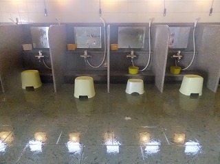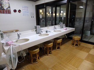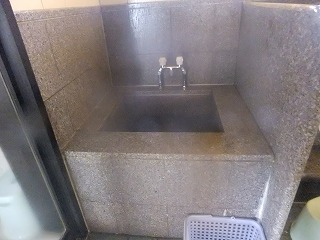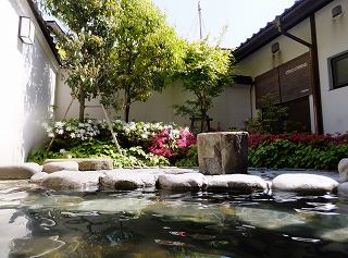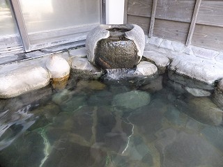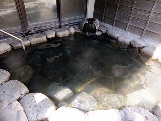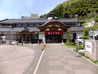 薬師湯に隣接して 有料の駐車場があります。 ![]() _(湯村温泉の中を流れる春来川)_____________(薬師湯) 薬師湯の前に温泉玉子を作る施設がありますが、この時は「温度が高くて 温泉玉子ではなく ゆで玉子になります」と書かれていました。 ![]() _____(温泉玉子の槽)_____________(入り口に立つ毘沙門天) 施設は新しくてキレイで、館内に入ったら 券売機で購入した入浴券を受付に出します。 (券売機と受付)ホールにある温泉分析書によると 源泉名は荒湯・薬師湯の混合泉で、泉質は ナトリウム- 炭酸水素塩・塩化物・硫酸塩泉です。 こちらの施設は温泉熱を利用した発電をしていて、受付の上に 発電量を示すモニターが あります。 ![]() _____(温泉分析書)___________(バイナリー発電システムのモニター) ホールから左に行った所に 男湯の入り口があります。 (浴室の入り口に掛かる湯のれん)脱衣所の鍵付きロッカーは無料で利用できますが、ドライヤーは有料(10分100円)です。 ![]() _____(脱衣ロッカー)______________(洗面ドレッシング) 浴室の手前にある掛け湯には湯が入っておらず、左の壁に並ぶ洗い場には ソープ類などは 置いてありませんが、洗い場には仕切り板が付いていて 浴室の床には肌触りの良い十和田 石が使われています。 ![]() _______(掛け湯)_________________(洗い場) 内湯の浴槽は20人が入れる大きさで 一部がジェットバスになっていて、窓の下に排湯溝が ありますが 温泉はオーバーフローになってませんでした。 ![]() _______(内湯)_____________(丸太の湯口、奥がジェットバス) 露天風呂の出口の横にサウナがありましたが 私は利用してないので分かりません。 露天風呂は3〜4人が入れる石作りの浴槽で、無色透明・無味無臭の温泉はツルスベの 肌触りです。(かすかに濁って見えましたが 無色と言っもいいと思います) (露天風呂)内湯はオーバーフローを確認できませんでしたが、露天風呂は 浴槽からあふれた温泉が 排湯口に流れ込んでいました ![]() ____(露天風呂の湯口)________________(排湯口) 敷地が狭いうえに塀に囲まれているので開放感はありませんが、満開のツツジと青空が気 持ち良かった。 ![]() ____(浴槽から見た景色)______________(満開のツツジ) (湯上り) ホールの横にある小上がり風の畳敷きの休憩所と 箱庭を眺めながら利用できるマッサージ チェアーでくつろぎました。 ![]() ___(小上がり風の休憩所)____________(マッサージチェアー)