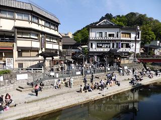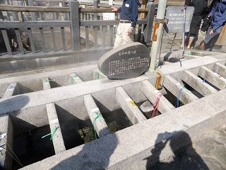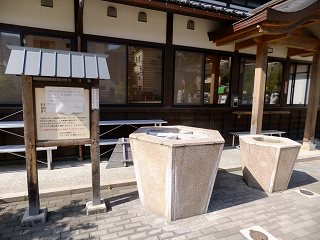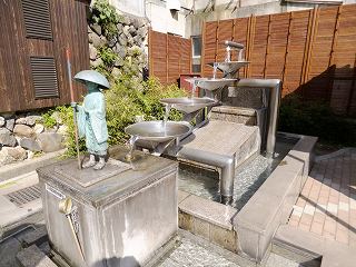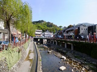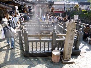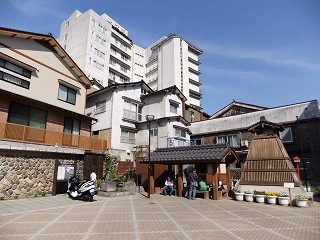 湯村温泉の元湯は荒湯で、日本一といわれる源泉温度98度の温泉が毎分470リットル湧出 しています。 ![]() __(春来川の岸辺にある荒湯)_______________(荒湯) 湯村温泉は、唐での修行を終えた慈覚大師円仁が 帰国して都へ帰る途中の嘉祥元年 (848年)に山陰地方を通った際に発見したといわれます。 ![]() ______(慈覚大師)________________(荒湯地蔵尊) なか(中)の湯つぼに15分ほど入れておくと ゆで玉子が作れるそうで、山菜やカニなどのアクが 出る物は した(下)の湯つぼを利用します。 ※ この時は、フタが開いた したの湯つぼにタケノコが半分ほど浸かってました。 ![]() _____(なかの湯つぼ)______________(調理中のタケノコ) 春来川沿いに作られた天然かけ流しの足湯は長さ20メートルで 日本一だそうです。 (足湯の周りの石も暖かかった)荒湯の隣にある湯村温泉ポケットパークには車が入れないのですが、この時は バイクが 入っていました。 (湯村温泉ポケットパーク)こちらにある常夜灯風の建物の中には 株湯と呼ばれる湯村温泉の元湯の泉源が湧出して いて、隣にある慈覚大師の湯時計は 20分サイクルで錫杖(しゃくじょう)が上下するそうです。 ![]() ________(株湯)_________________(湯時計)