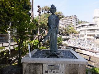 (夢千代日記) 山陰の小さな温泉町を舞台にした小説 夢千代日記、そのドラマ化にあたり 物語に登場する 湯の里温泉となったのが湯村温泉です。 四方を山に囲まれて温泉情緒たっぷりな湯村温泉のイメージが 夢千代日記のイメージを引き 立て 不朽の名作となりました。 胎内被爆して 白血病であと3年の命と宣告された永井佐千子(夢千代)が、母の残した 山陰の 小さな温泉町の置屋を女手ひとつで切り盛りする中で、彼女を取り巻く人間関係が多重に交差し その人間模様を綴った病床日記を通じて物語りは展開していきます。 ____________________________(こちらのサイトから抜粋) ![]() ___(夢千代のブロンズ像)_____________(吉永小百合の手形) ![]() ______(夢千代館)____________(夢千代の祈りのモニュメント) _____ - - - - - - - - - - - - - - - - - - - - |