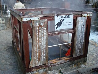 阪和自動車道南紀田辺IC→国道42号線→田辺市→上富田町潮来→311号線→本宮町。 阪和自動車道吉備IC→国道424号線→龍神村→311号線→本宮町。 西名阪自動車道香芝IC→国道24号線→五条市→168号線→本宮町。 ※ 駐車場に 炊飯は厳禁と書かれていたのに、何日も車中泊をしているような人がいました。 (湯の峰温泉の駐車場)湯の峰温泉は 1800年以上の歴史を持つ日本最古の温泉地と云われてます。 (湯の峰温泉)温泉街の中心に架かる橋から湯の谷川に下りた所に 92度の源泉が涌く 湯筒があって・・ ![]() ____(湯筒と湯の谷川)_________(硫化水素臭がする蒸気が上がる湯筒) 湯筒の隣に 湯筒地蔵があります。 ![]() ______(湯筒地蔵)___________(画像をクリックすると拡大します) 橋を渡ると 湯の峰の地名の由来になったといわれる「湯胸薬師」を御本尊とする東光寺が あって、その隣に 温泉をポリタンクに汲む場所があります。 ![]() _______(東光寺)________________(温泉くみとり所) 東光寺の奥にある 湯の峰公衆浴場で、つぼ湯(薬湯付き)と一般湯に入る手続きをします。 ![]() ___(白い建物が公衆浴場)______________(公衆浴場の受付) この時は、6時に駐車場に着いて 真っ先に つぼ湯の手続きをしたのに、私は 9番目でした。 受付のおじさんから「1組30分の時間制ですが 20分ぐらいで上がる人もいるので、10時より 少し前に戻って来て下さい」と言われたので、その間に 薬湯と一般湯に入りました。 __________ __________(薬湯と一般湯に行く)______(つぼ湯に行く) ____ ________________(2008年) (2012年) - - - - - - - - - - - - - - - - - - - - - |