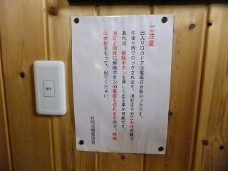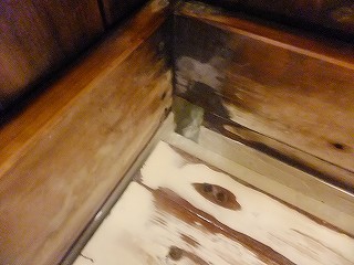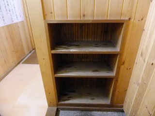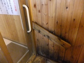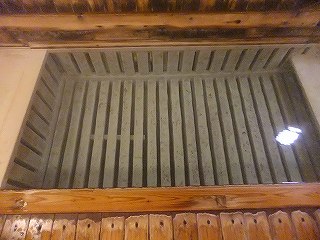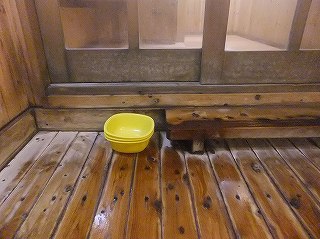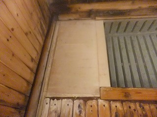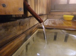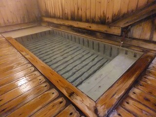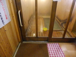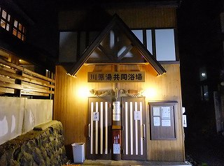 蔵王ライン(21号線)にある蔵王温泉バスターミナルの所から川沿いの道を登って行くと、 霊泉碑の周りに10台ぐらいの無料駐車場があります。 ![]() _______(霊泉碑)________________(霊泉碑の案内) 霊泉碑の上にある道を右に行って川を渡ると「すのこの湯かわらや」があって、そこから一段 下がった所に 川原湯共同浴場があります。 ![]() ____(川原湯共同浴場)_____________(入り口にある料金箱) 脱衣所は 上湯と下湯の中間の広さで、作りも 上湯ほど新しくなく 下湯よりはキレイです。 ※ 上湯と下湯にはトイレがありますが、川原湯にはトイレがありません。 ![]() ________(靴入れ)_______________(大きな脱衣棚) 蔵王温泉の3つの共同浴場は 出入り口のドアロックが自動開閉式なので 入浴時間を厳守 しなくてはなりません。 (自動ロックの注意書き)脱衣所にある温泉分析書によると 源泉名は川原湯共同浴場源泉で、泉質は 酸性・含鉄・ 硫黄-アルミニウム-硫酸塩・塩化物温泉ですが、温泉表示は見当たりませんでした。 他の2つの共同浴場にあ温泉表示には、源泉の温度が高いので水を加えて温度調節をして いるが、加温・入浴剤・消毒剤は一切使用していない かけ流し(放流式)と書かれてました。 (温泉分析書)脱衣所と浴室の間が透明のガラス戸になっているので、共同浴場でも 盗難の心配をすること なく利用できますが、貴重品は持ち込まない方がいいでしょう。 こちらの施設は、浴室の入り口の戸と浴槽の入り口にバリアフリーの手すりが付いています。 ![]() ___(脱衣所から見た浴室)___________(ドアの所に付いた手すり) 温泉は強酸性で石鹸を使えないため、かけ湯の洗面器があるだけで 洗い場はありません。 ![]() ______(洗面器)________________(浴室の天井の梁) 浴槽は4人が入れる大きさで 浴槽内の手前に踏み台があります。 (川原湯の浴槽)温泉は浴槽の床から湧き出しているので 浴槽全体がスノコ状になっていて、男湯と女湯の 間も スノコで仕切られています。 (スノコ状の浴槽)温泉の温度はぬるめで、水が出っ放しになっているホースの周りは さらに温度が低くい。 (ホースから出ている水)浴槽の一番奥が板張りになっていて、その横にある溝を伝って 浴槽からあふれた温泉が 浴室の外に流れ出ていますが、ここにある板の利用方法が分からなかった。 ![]() _(壁伝いにある溝と 意味不明の板)_____________(排湯口) 蔵王温泉の共同浴場を連休中に利用するということで混雑を覚悟してましたが、蔵王に着く のが遅れて 利用時間が旅館の食事時間帯と重なったため 貸切の状態で利用できました。