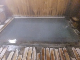 蔵王ライン(21号線)にある蔵王温泉バスターミナルの所から川沿いの道を登って行くと、 霊泉碑の周りに10台ぐらいの無料駐車場があります。 ![]() _______(霊泉碑)_______________(霊泉碑の案内) 霊泉碑から1〜2分下りた所の左にあって、入り口の前に 大量の蒸気が上がっています。 ![]() _____(下湯協同浴場)_____________(入り口にある料金箱) 建物は 近くにある3つの共同浴場の中で一番古いが、脱衣所は ここが一番広い。 ※ トイレもありますが、昔懐かしい和式です。 ![]() _______(脱衣所)______________(下湯共同浴場のトイレ) 脱衣所にある温泉分析書によると 源泉名は蛇荒川折口・インキョ・上の川、泉質は 酸性・ 含硫黄-硫酸塩・塩化物温泉で、温泉表示によると 源泉の温度が高いので水で温度調節 しているが、加温・入浴剤・消毒剤は一切していない かけ流し(放流式)とのことです。 ![]() ______(温泉分析書)________________(温泉表示) 脱衣所は組合員が大事に管理してくれているようで キレイに掃除されています。 ![]() ____(脱衣所にあるイス)_______________(洗面台) 脱衣所と浴室の間の戸が透明のガラス戸になっているので、共同浴場でも 盗難の心配を せずに利用できますが、貴重品は持ち込まない方が良いでしょう。 (脱衣所から見た浴室)上湯共同浴場と川原湯共同浴場には洗面器しかありませんが、こちらには 掛け湯の槽と イスがあります。 (掛け湯)浴室の広さは 上湯共同浴場よりもスノコの部分が広いが 浴槽の長さが短いようなので、 浴槽の大きさ自体は それほど変わらないようです。 (浴槽)温泉の温度は 適温よりやや熱めで、色は(わずかに青白く見えますが)ほぼ無色透明で、 強い硫化水素臭がして レモネードの倍ぐらい酸っぱい。 (湯口)温泉は源泉掛け流しで 浴槽からあふれた温泉は壁際にある排湯口に流れ込んでいます。 (溝にある排湯口)蔵王温泉の共同浴場を連休中に利用するということで混雑を覚悟してましたが、蔵王に着く のが遅れて 利用時間が旅館の食事時間帯と重なったため 貸切の状態で利用できました。