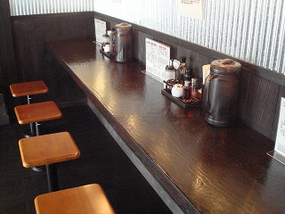 並んでいて、カウンター席の壁に 油麺の食べ方を説明した貼り紙があります。