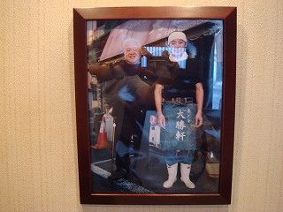 (手前のカウンターから見た奥のカウンター)___(壁にある山岸さんと店主の写真)