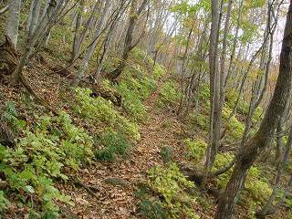 登山道の傾斜がきつくなって 道も細くなります。