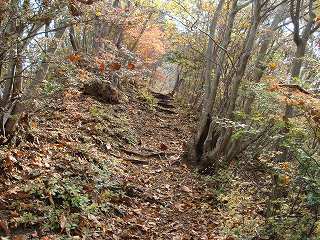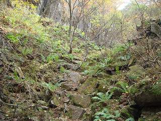 ___(仏岩から先の登山道)____________(左側が崩落した登山道)