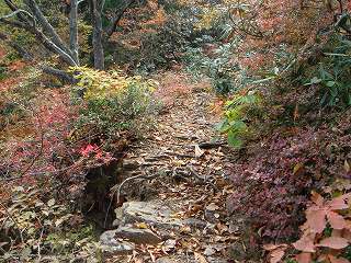 迂回路を5分登った所に中腹コースの分岐があります。
