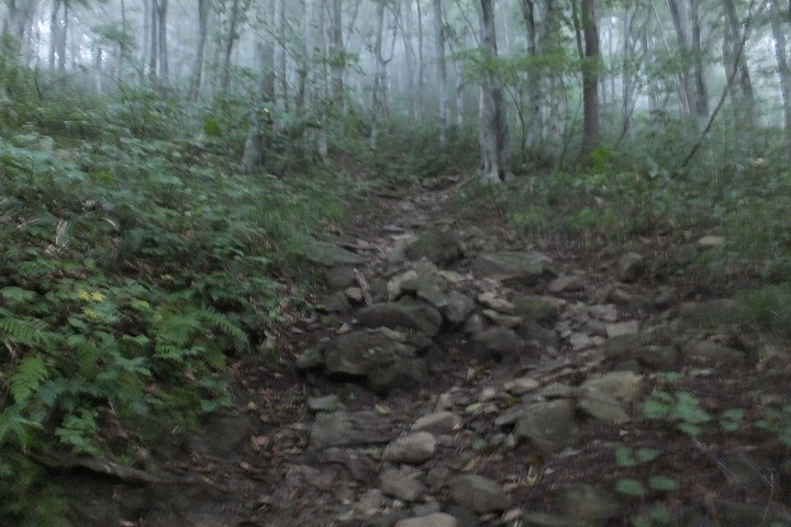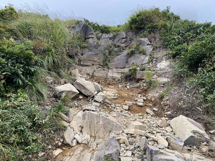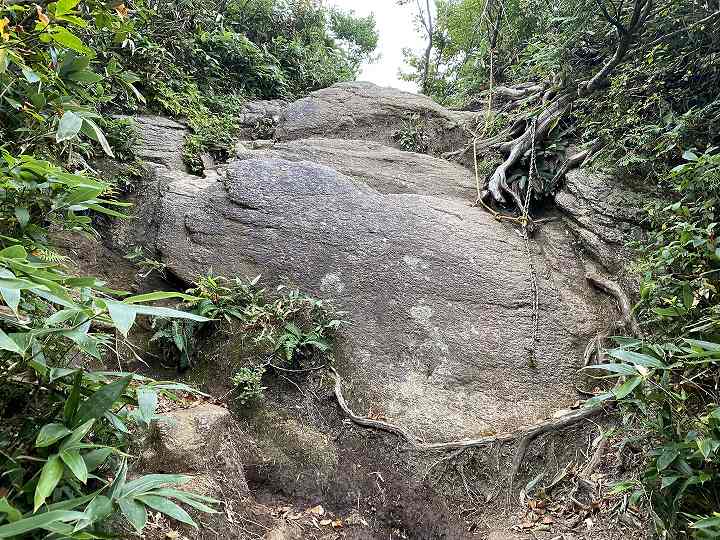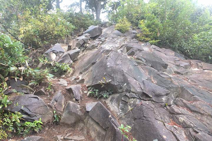 高度が上がると 木の根の登山道から岩の登山道になります。