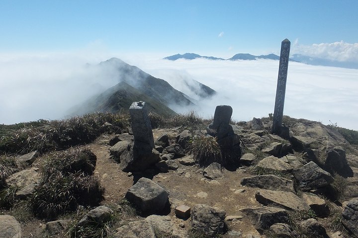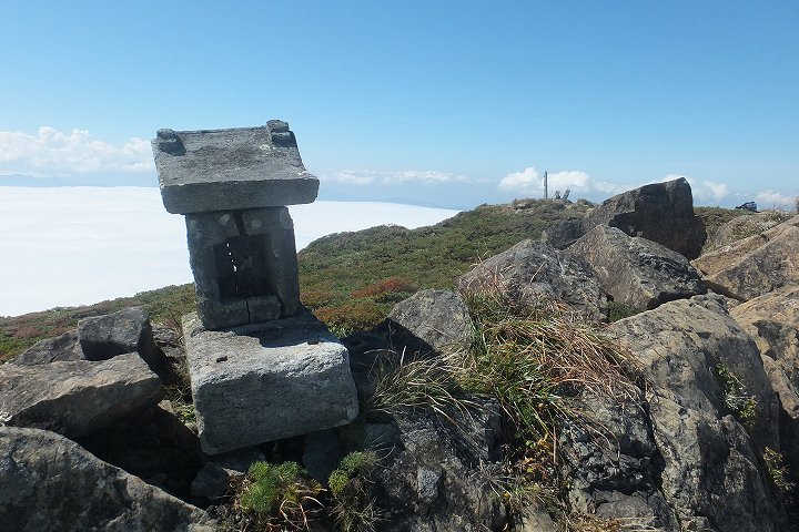 山頂には2つのピークがあって、もう一つのピークには石の祠があります。