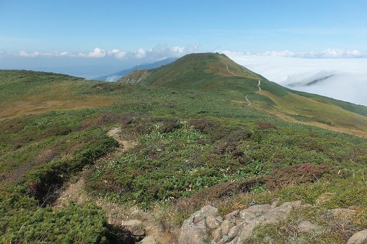 白毛門から先の登山道は背の高い笹になりますが、この時は 両脇の笹が刈り取られいて