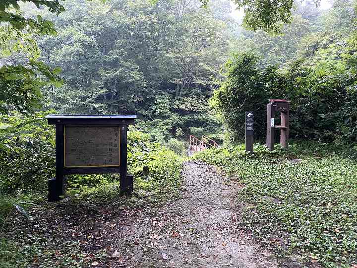 橋を渡ったら 5分で傾斜のきつい登山道になります。