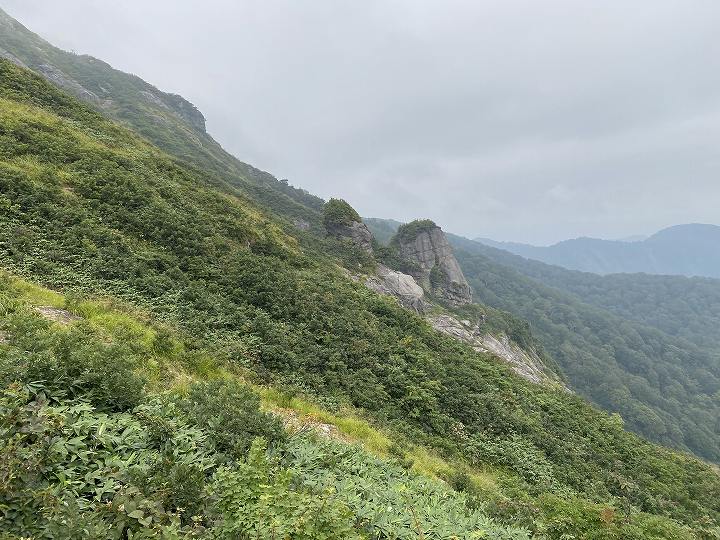 この辺りで 登山道の左に谷川岳の一ノ倉沢が見えました。