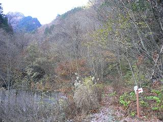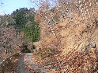 ____(野栗沢集落の分岐)________(峠の方から振り返って見た天丸登山口)
