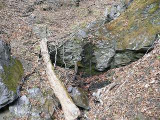 (恐竜の足跡がある岩、上のくぼみが足跡)
