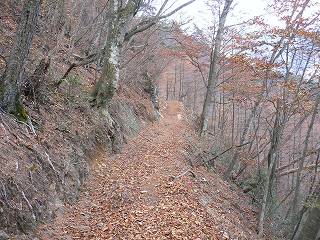 このコースは 登山口から馬道のコルの手前まで小型のショベルカーで整地された高低差の