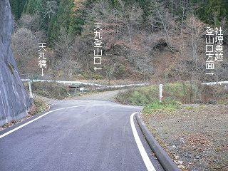 写真の交差点に「天丸山・ 帳付山3Km」の案内があって、ここから右に入って 傾斜のきつい