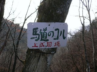 ______(馬道のコル)____________(木に打ち付けられた標識)