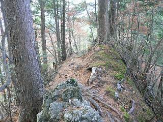 (登山道から振り返って見た天丸山)___________(稜線の登山道)