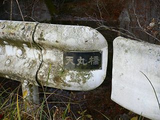 (袖ビームに取り付けられたプレート)_____(天丸登山口、奥に見えるのが天丸山)