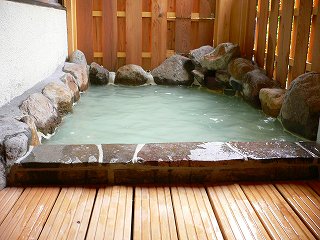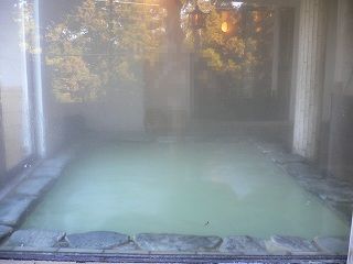 内湯は透明の温泉で、露天風呂に 大涌谷から引き湯をしたという白濁の小さな浴槽があり