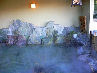 露天風呂の奥にある源泉かけ流しの大理石風呂は日替わりで、この時は女性の日でした。