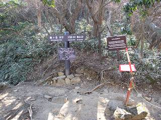 冠ヶ岳の標識がある分岐に戻って早雲山に向かうと、登山道が2本に別れた所に「下り