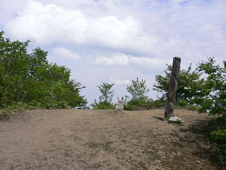 ___(鼻曲山(大天狗)の山頂)__________(木の枝にくくりつけられた標識)